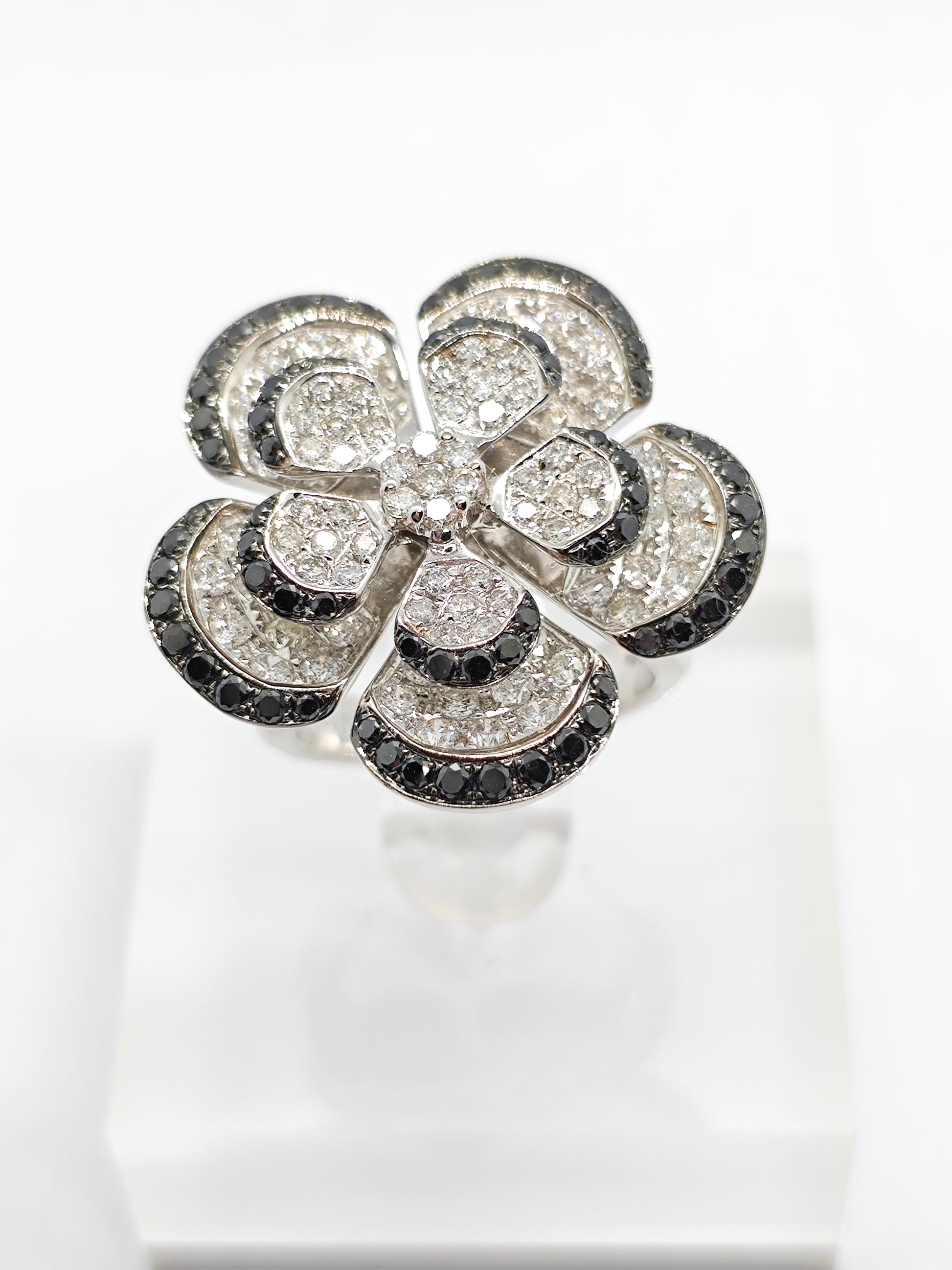 92 diamond (1.45 carat), 70 black diamonds (0.84 carat)