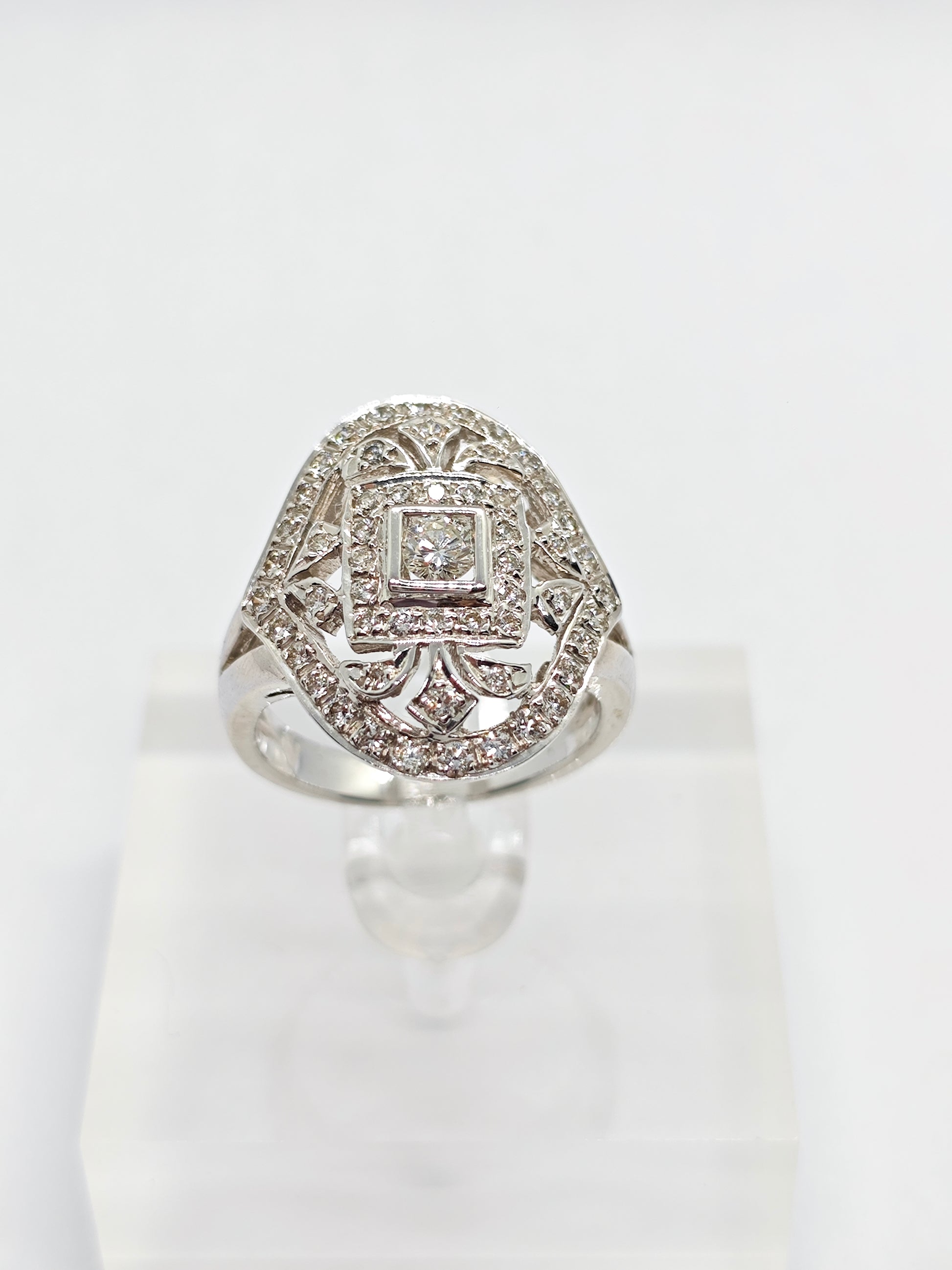 1 diamond (0.15 carat), 54 smaller diamonds (0.56 carat)