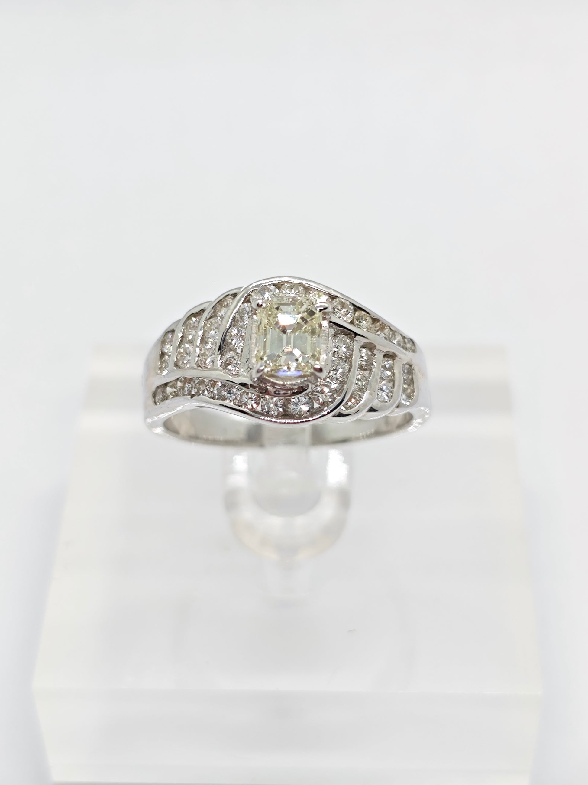 1 Emerald diamond (0.5 carat), 36 diamonds (0.62 carat)