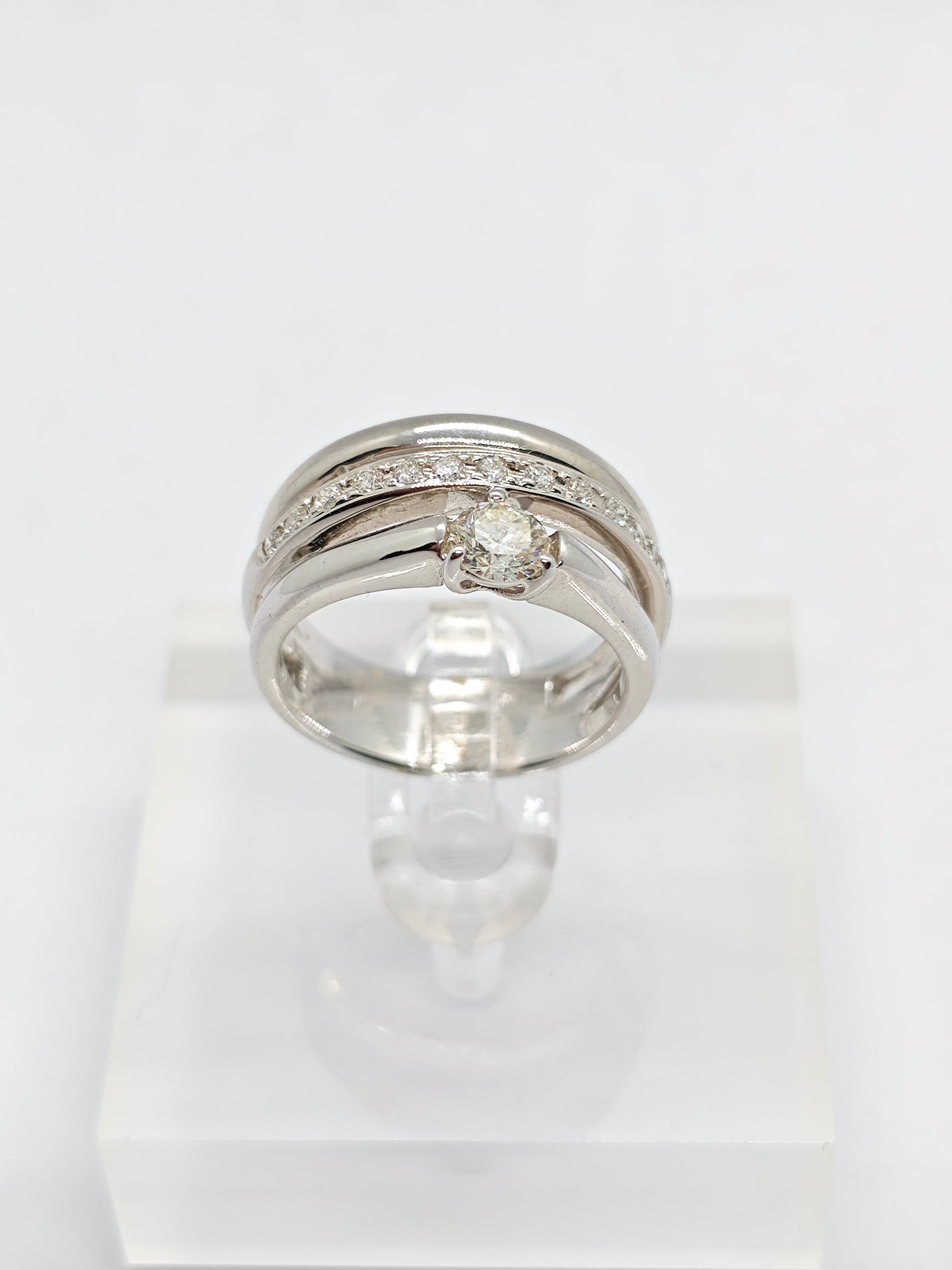 1 diamond (0.28 carat), 13 small diamonds (0.17 carat)