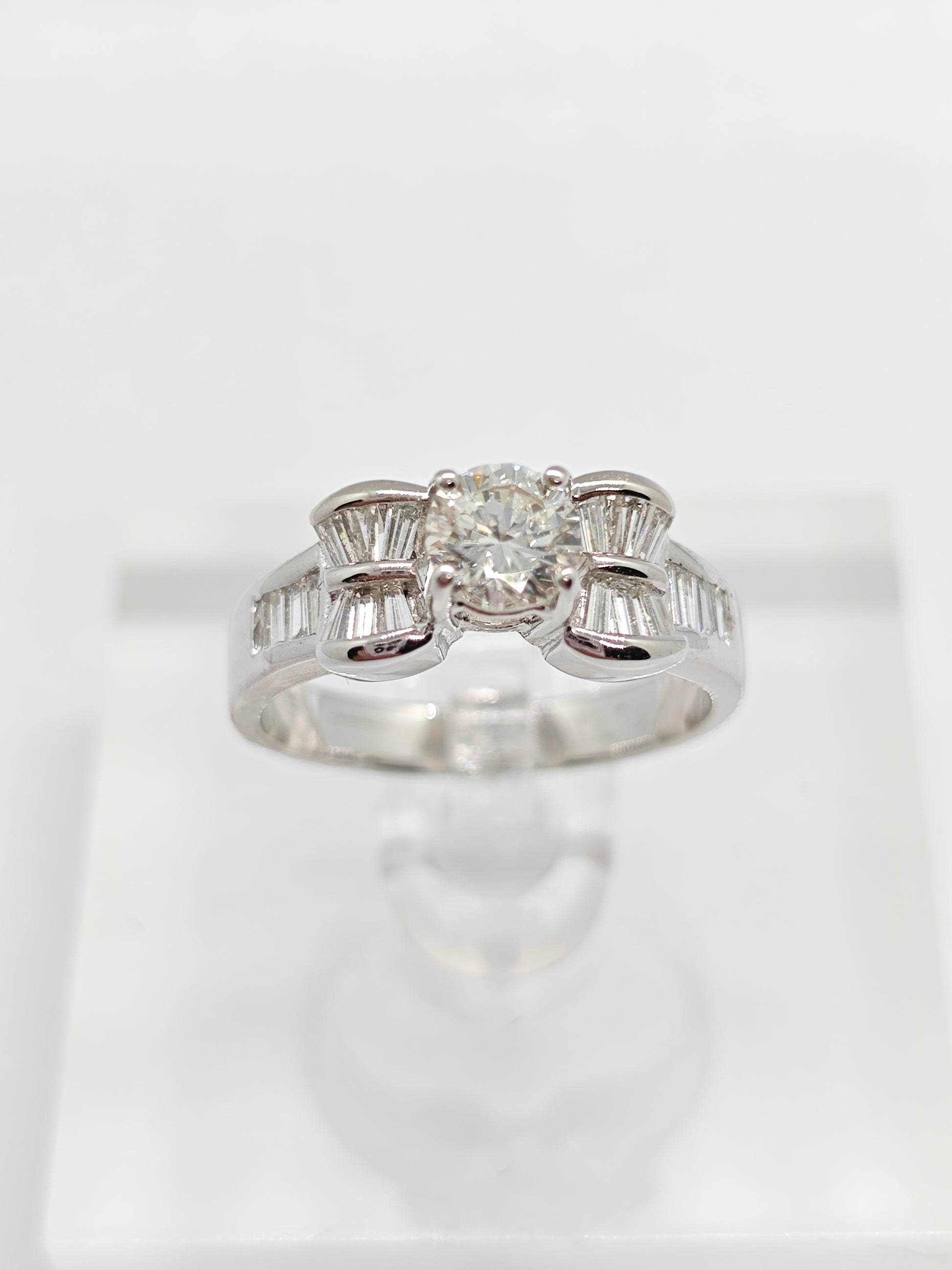 1 diamond (0.5 carat), 20 tapered diamonds (0.38 carat)