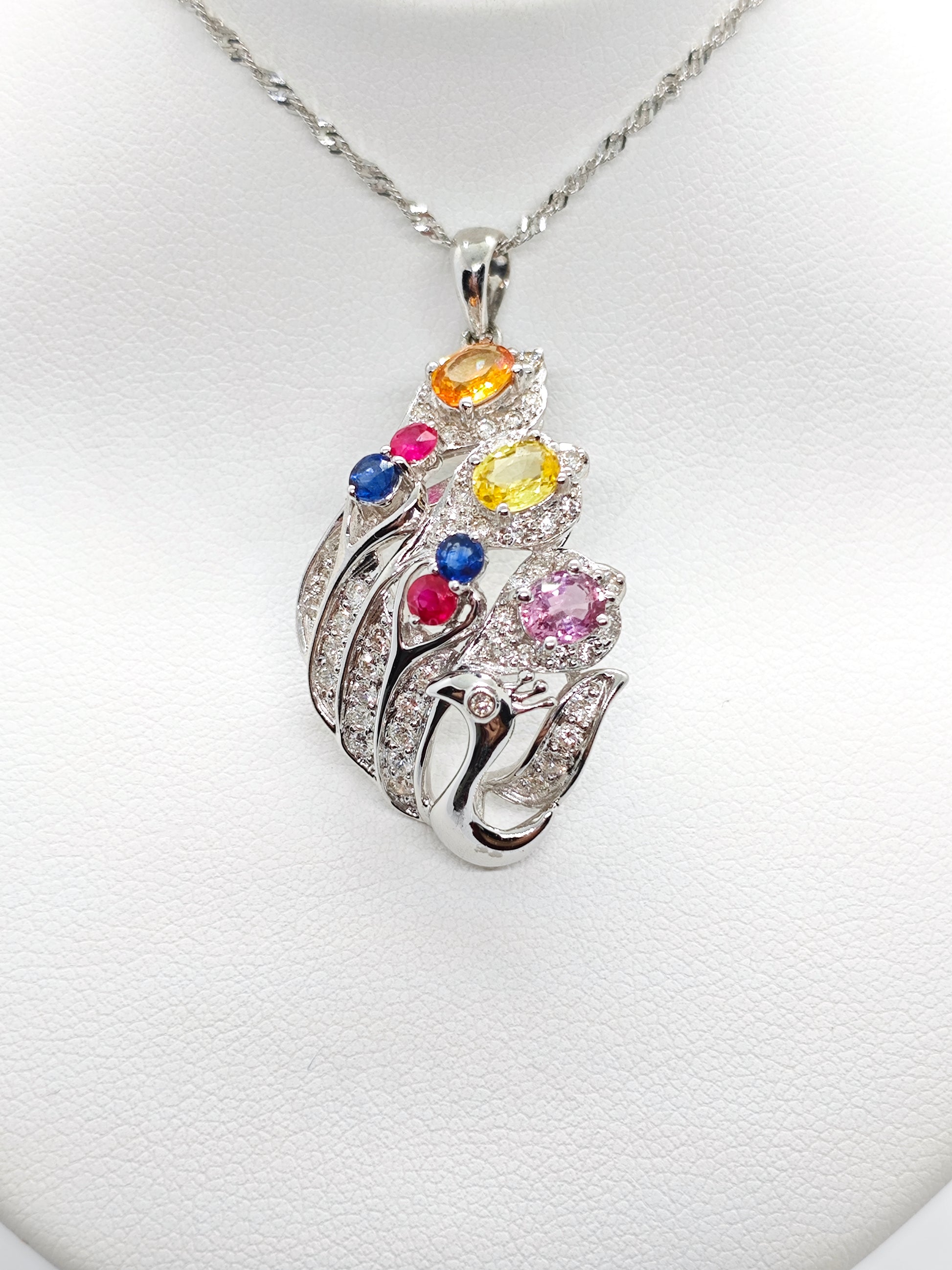 7 fanci coloured stone (1.85 carat), 52 diamonds (0.68 carat)