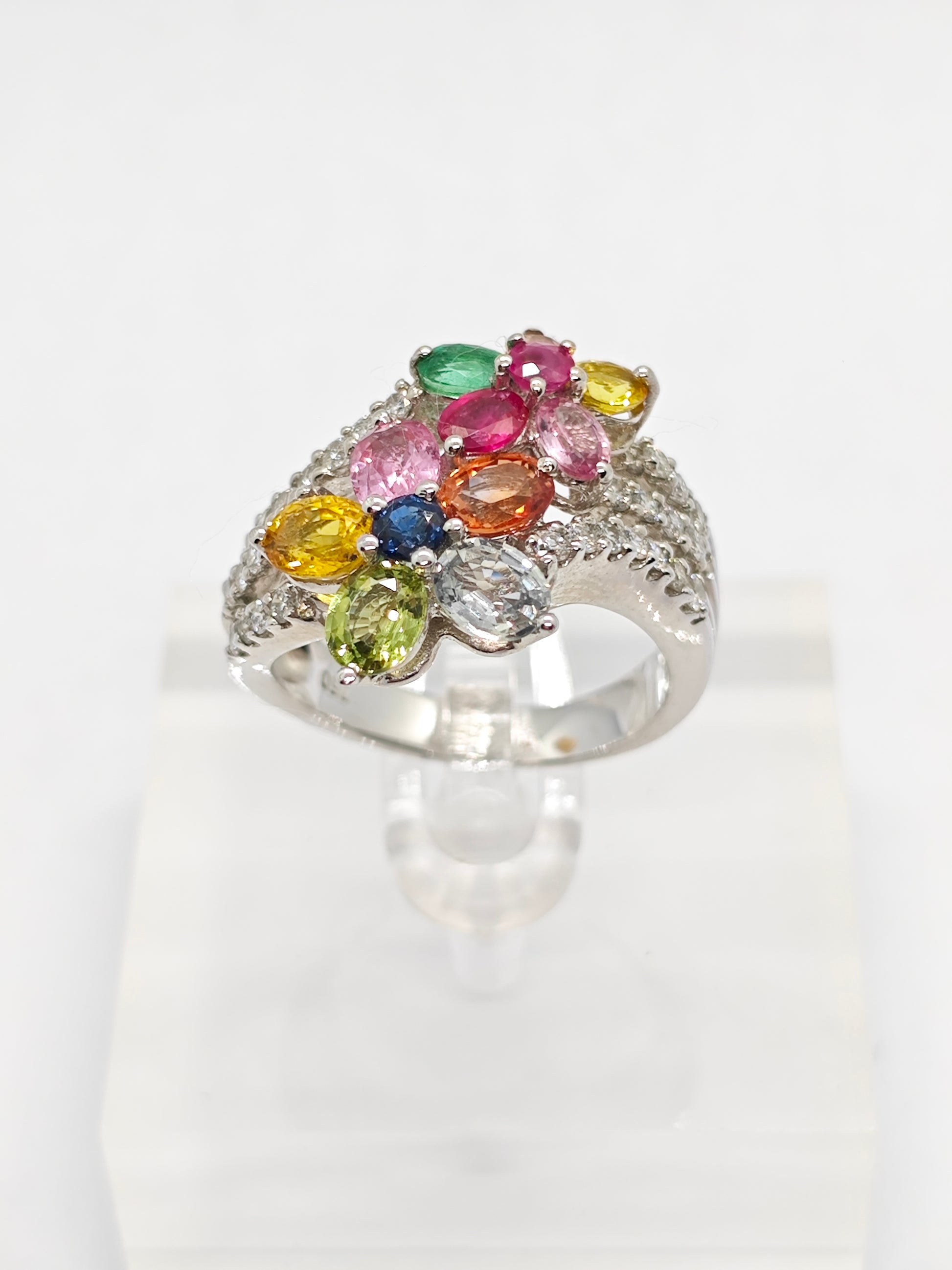 12 fanci colour gem stones (3.82 carat), 30 diamonds (0.60 carat)