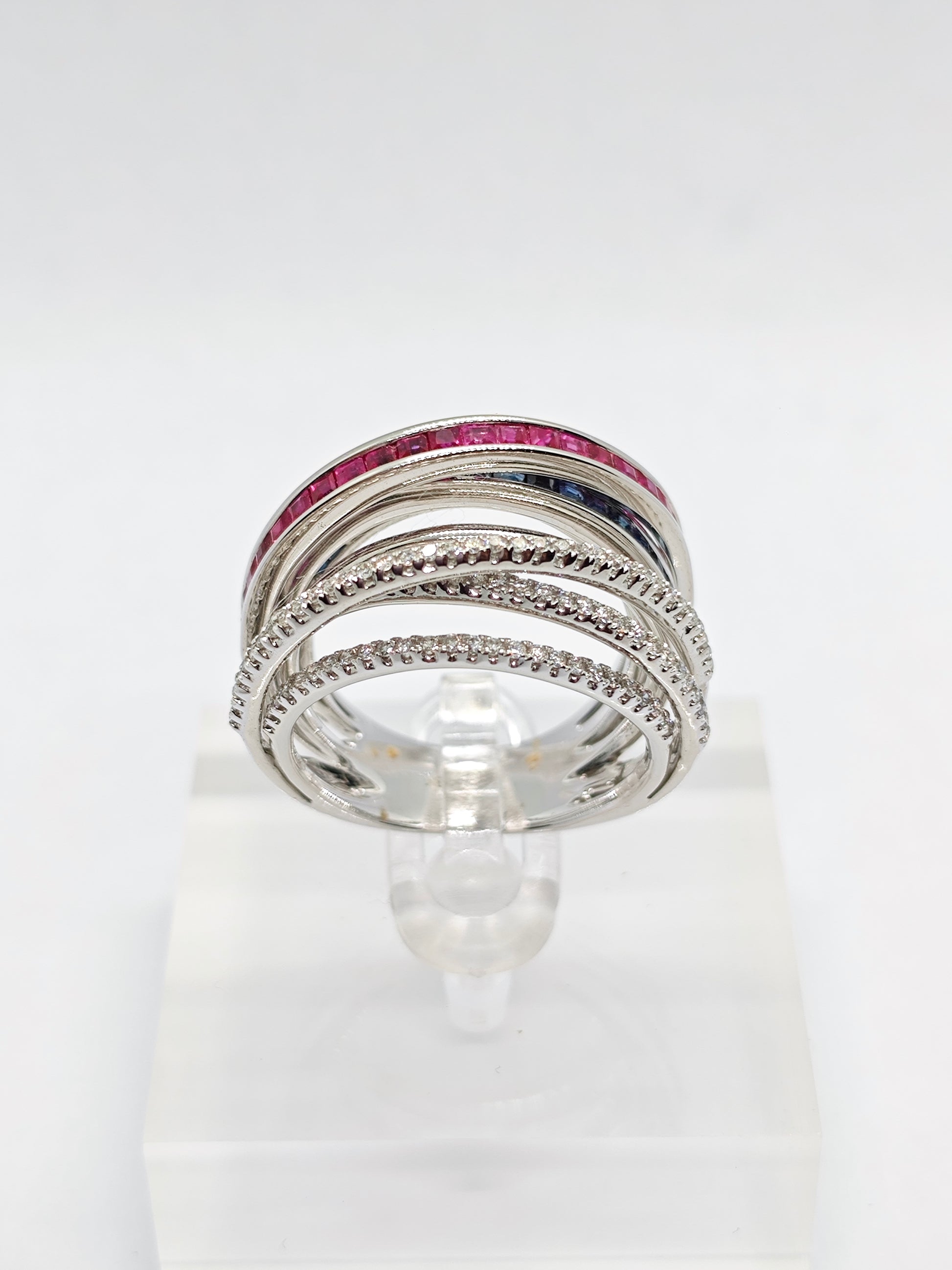 120 diamonds (0.48 carat), 19 sapphire (0.76 carat), 22 ruby (0.86 carat)