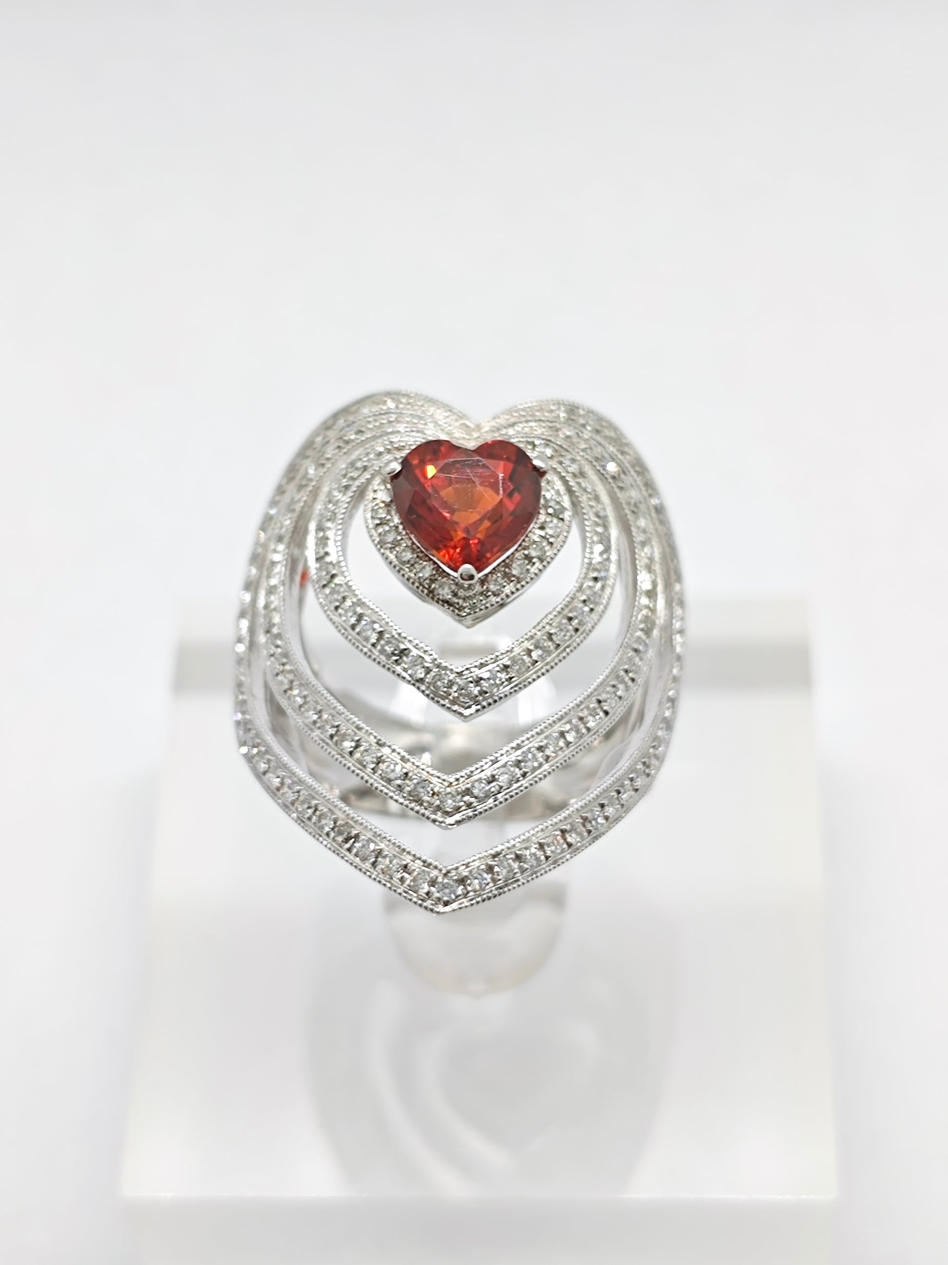 1 Spessartite Garnet (1.8 carat), 131 diamonds (6.59 carat)