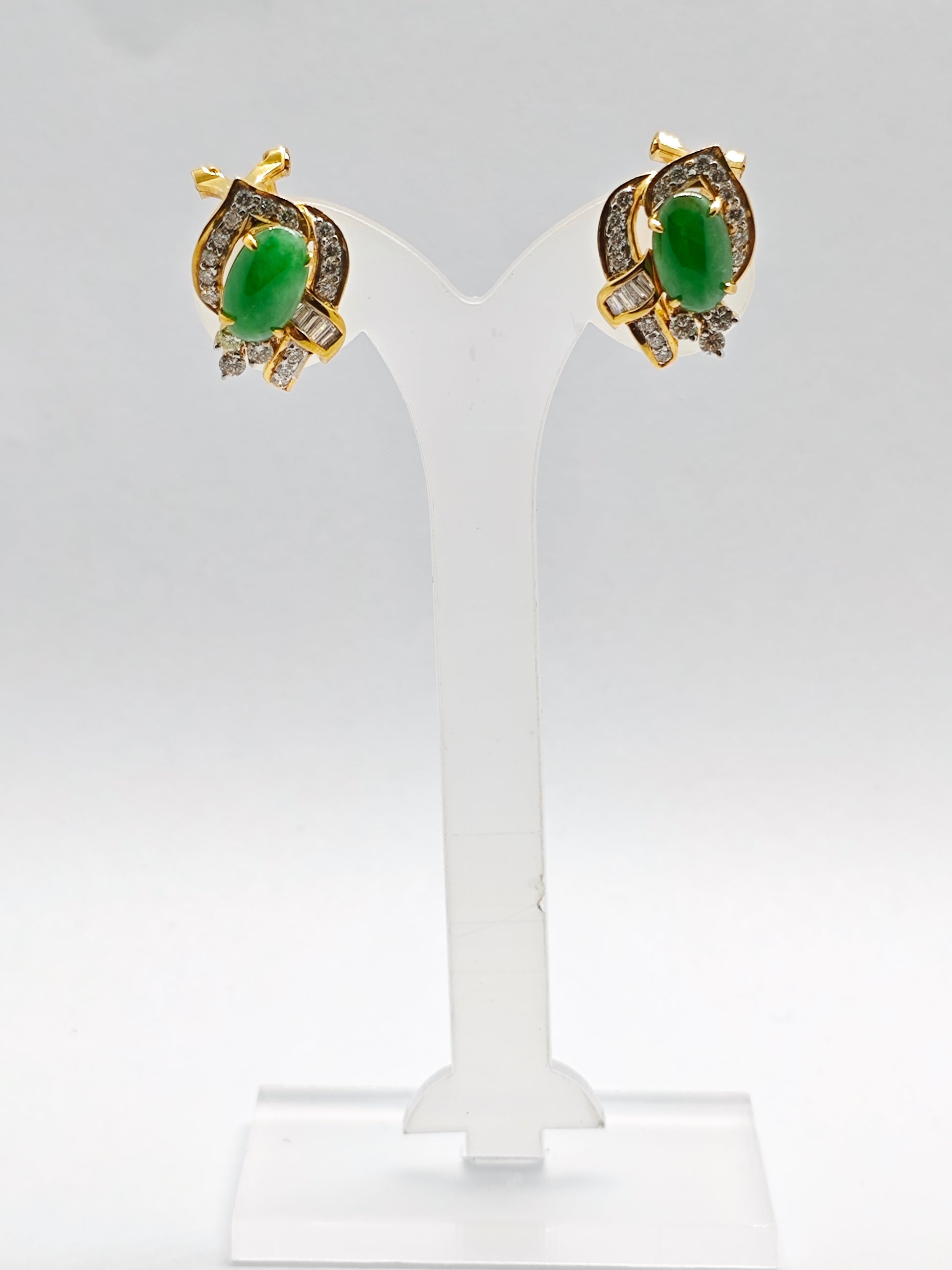 2 A jade, 8 tapered diamonds (0.16 carat), 36 diamonds (0.64 carat)