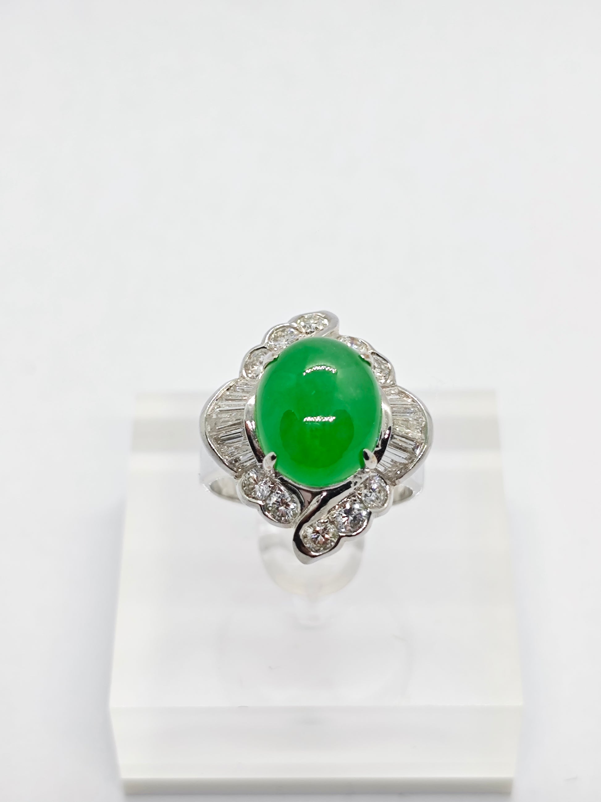 10 diamonds (0.55 carat), 14 tapered diamonds (0.58 carat), 1 A jade