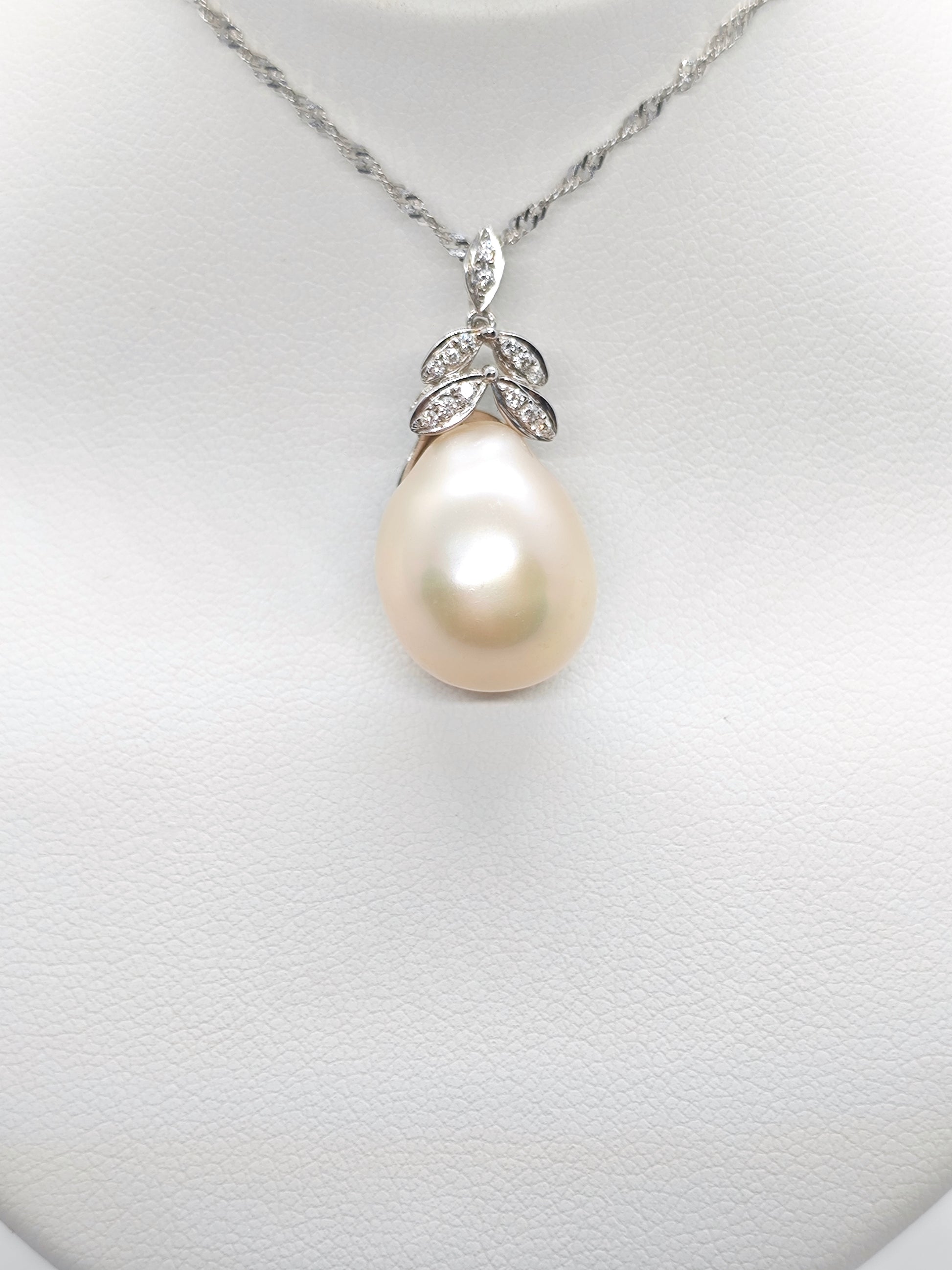 Fresh water pearl, 14 diamonds (0.08 carat)