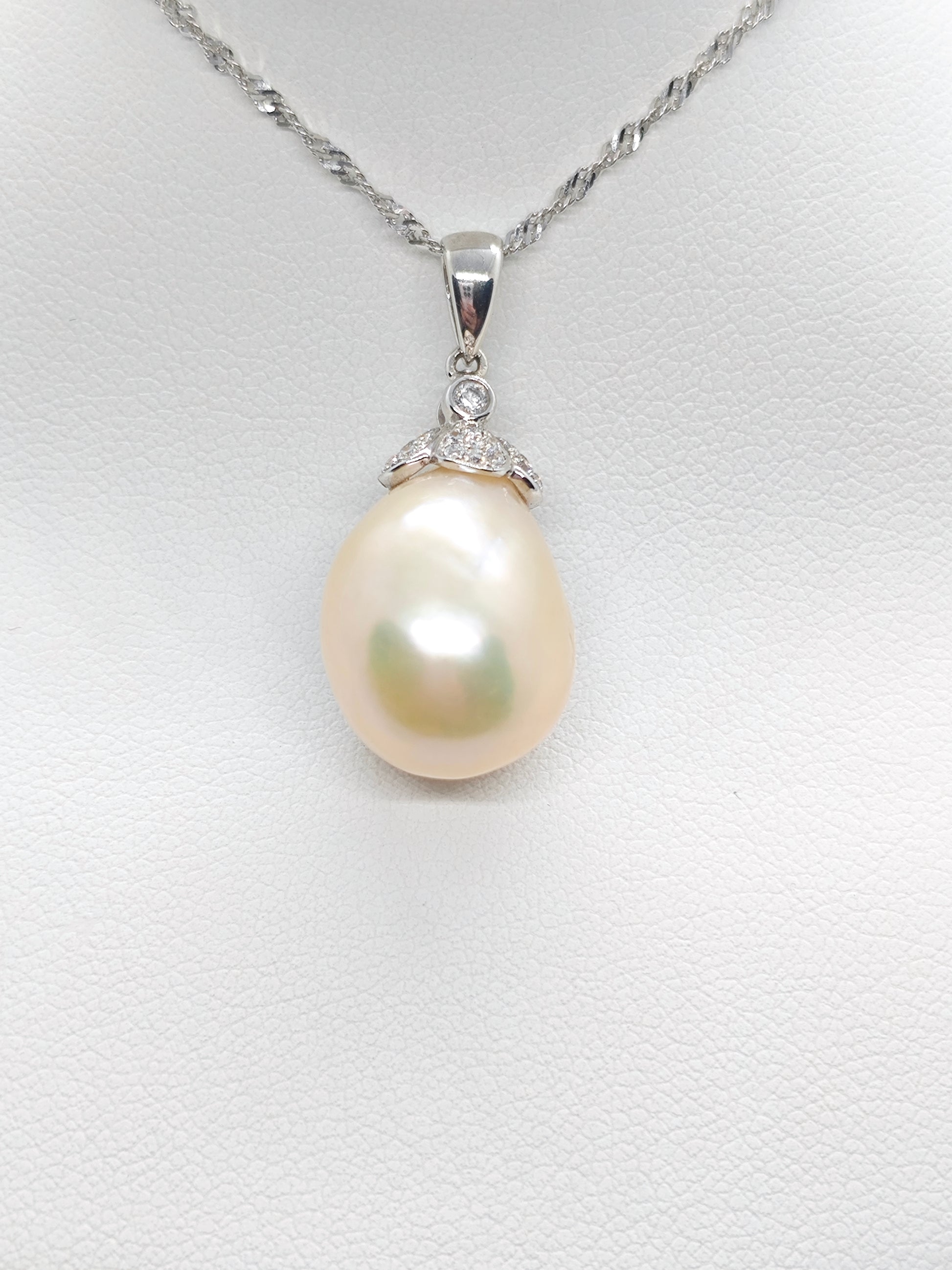 Fresh water pearl, 22 diamonds (0.15 carat)