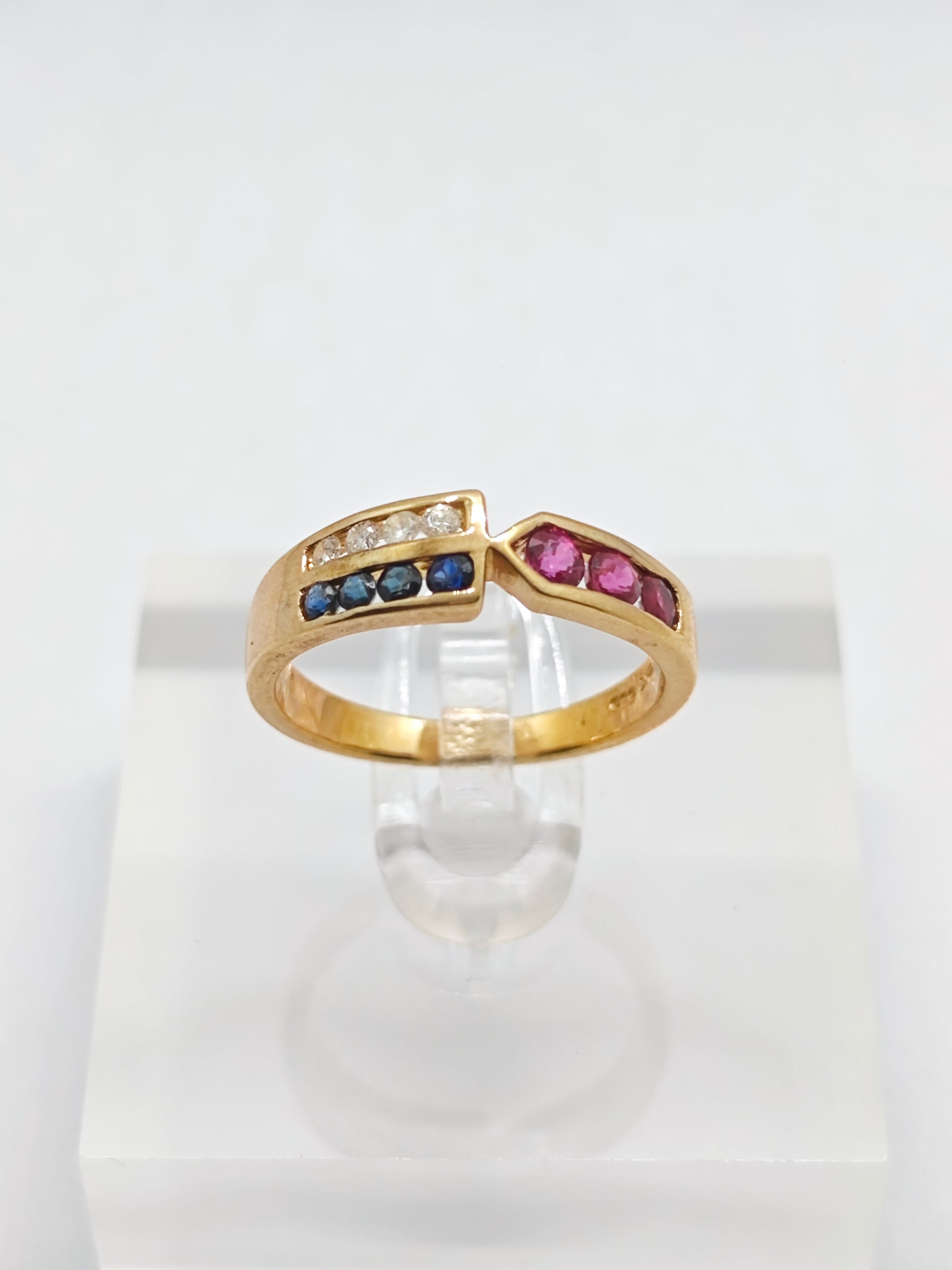 3 ruby (0.3 carat), 4 sapphire (0.12 carat), 4 diamonds (0.1 carat)
