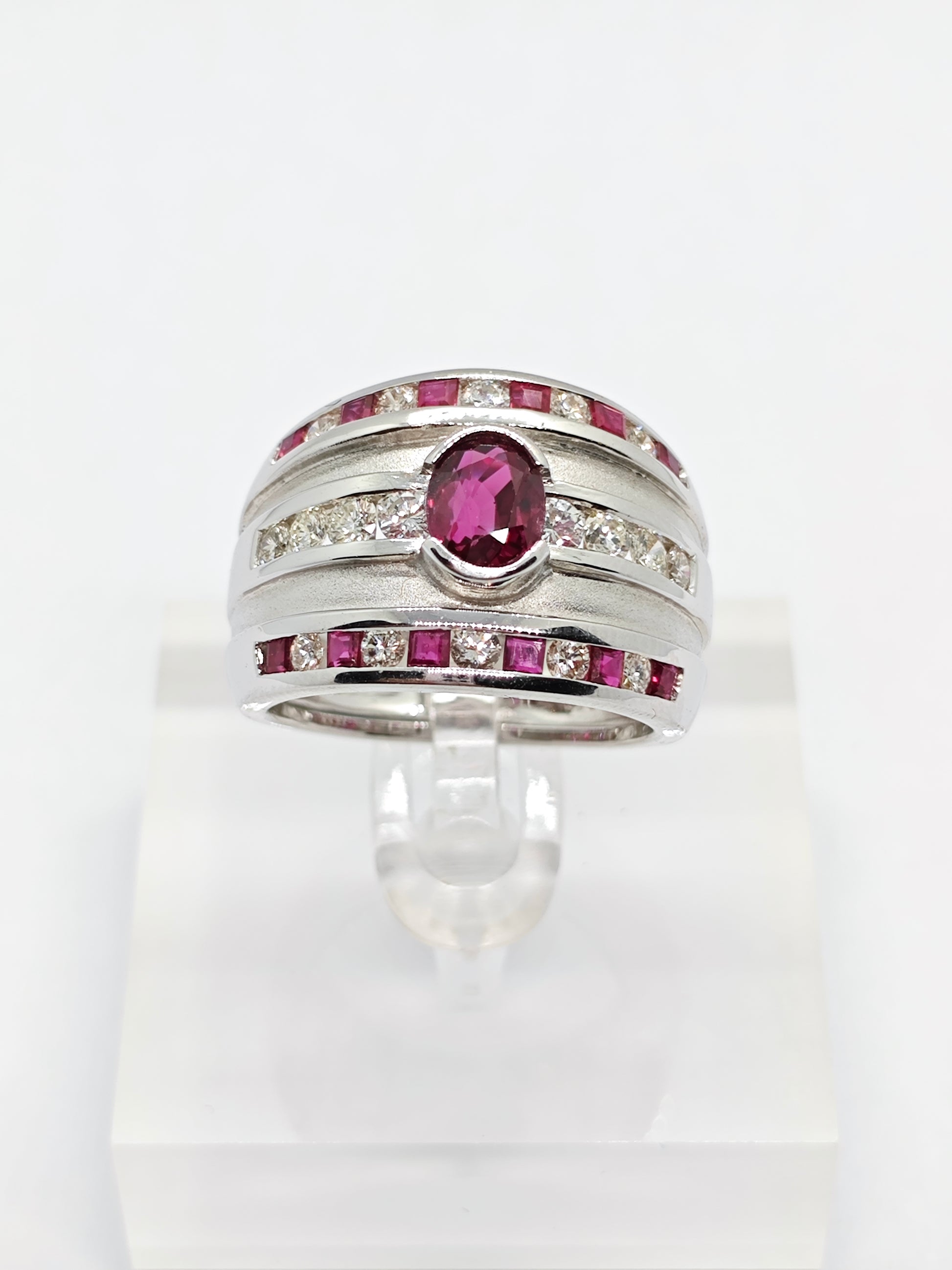 1 ruby (1.18 carat), 12 ruby (0.7 carat), 18 diamonds (0.91 carat)