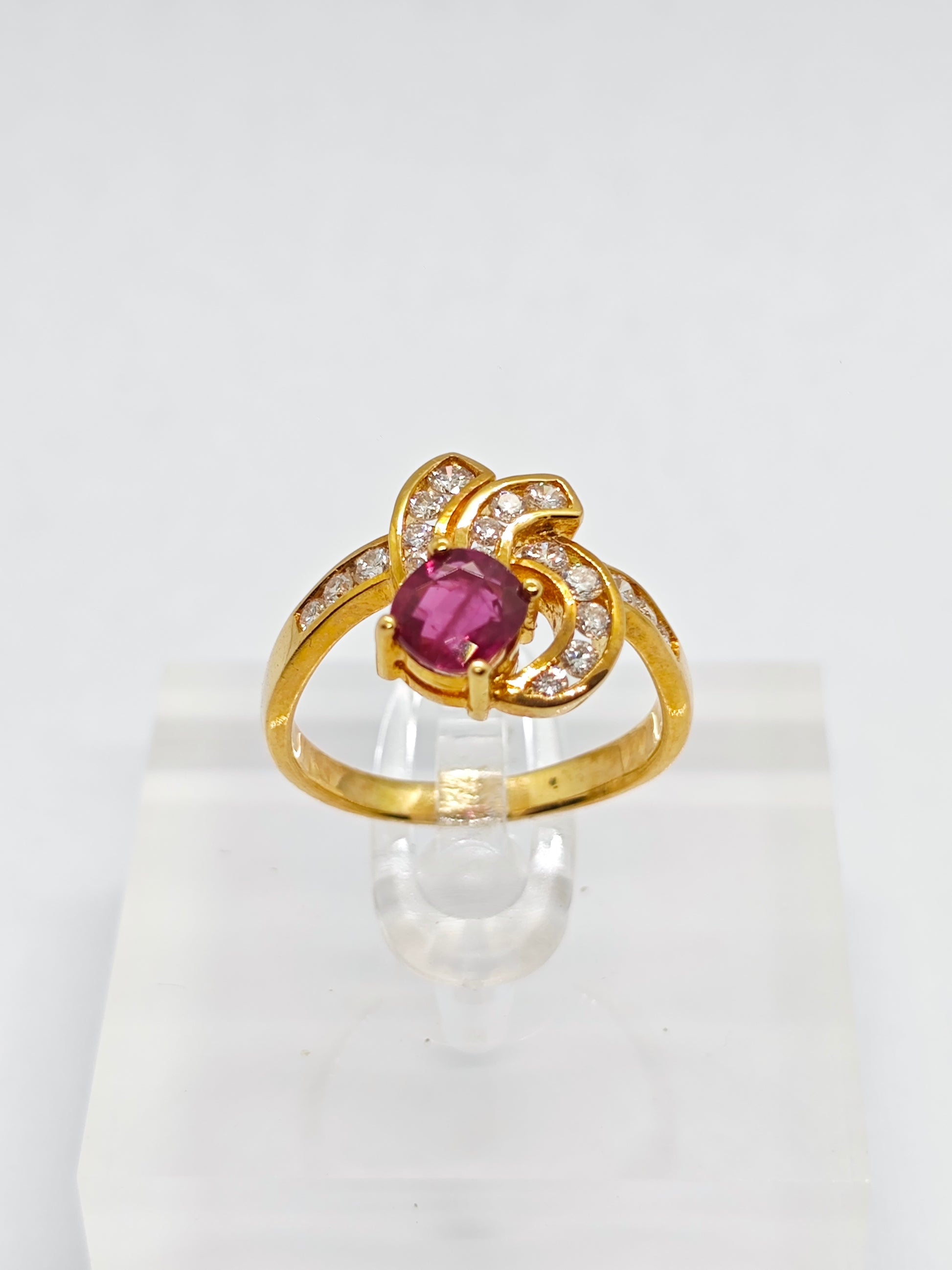 1 ruby (0.83 carat), 19 diamonds (0.53 carat)