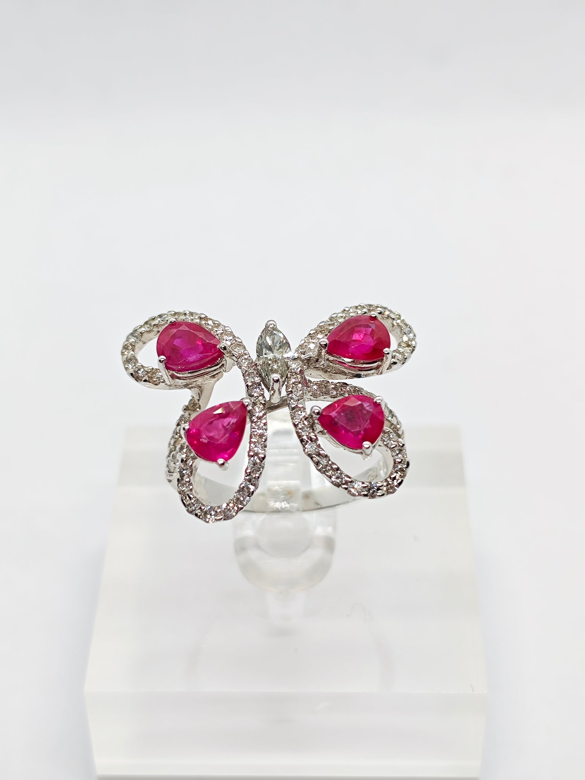 1 marquise (0.19 carat), 4 ruby (2.43 carat), 84 diamonds (0.79 carat)