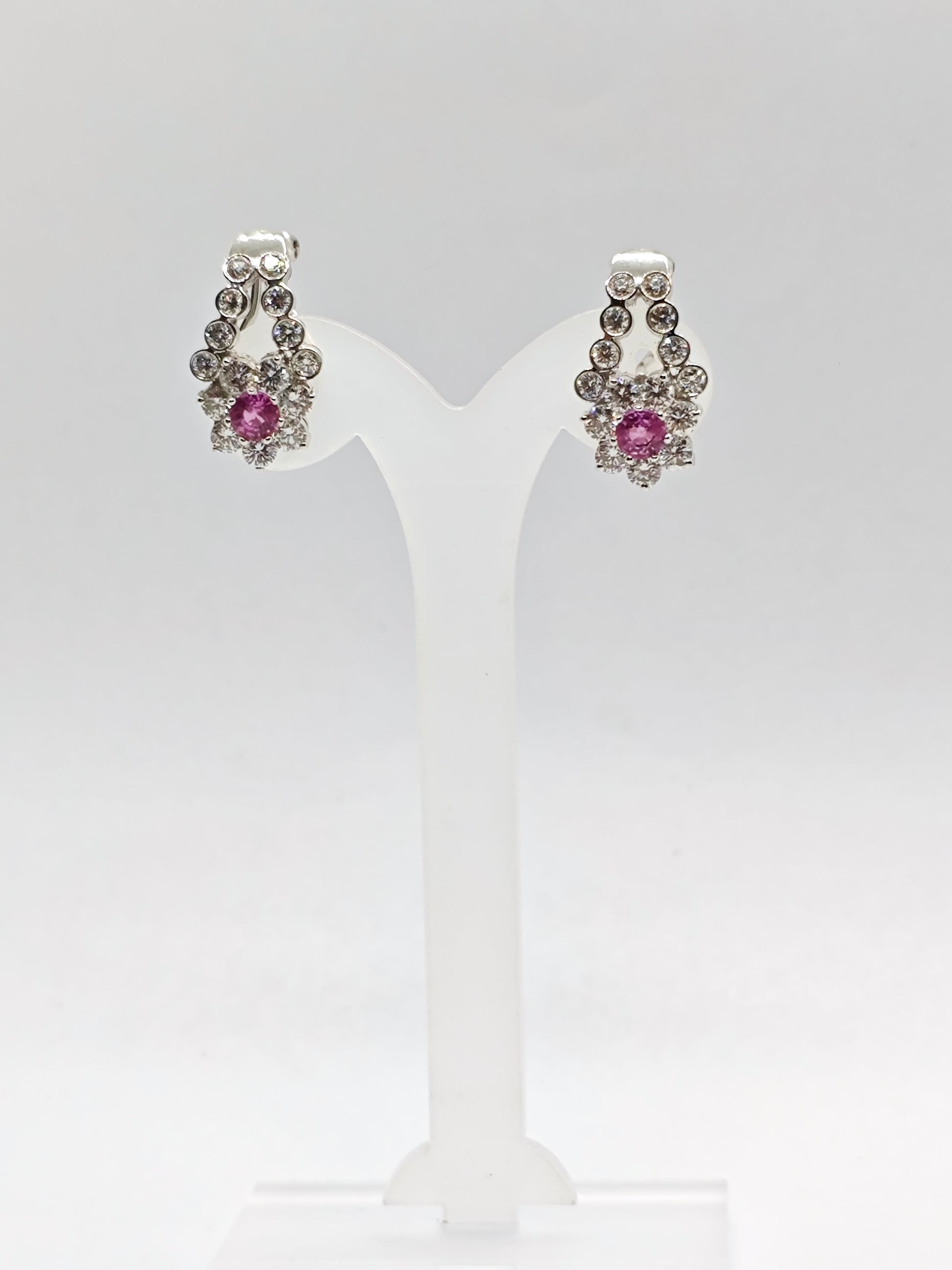 2 pink sapphire (0.96 carat), 14 diamonds (1.59 carat), 16 diamonds (0.72 carat)