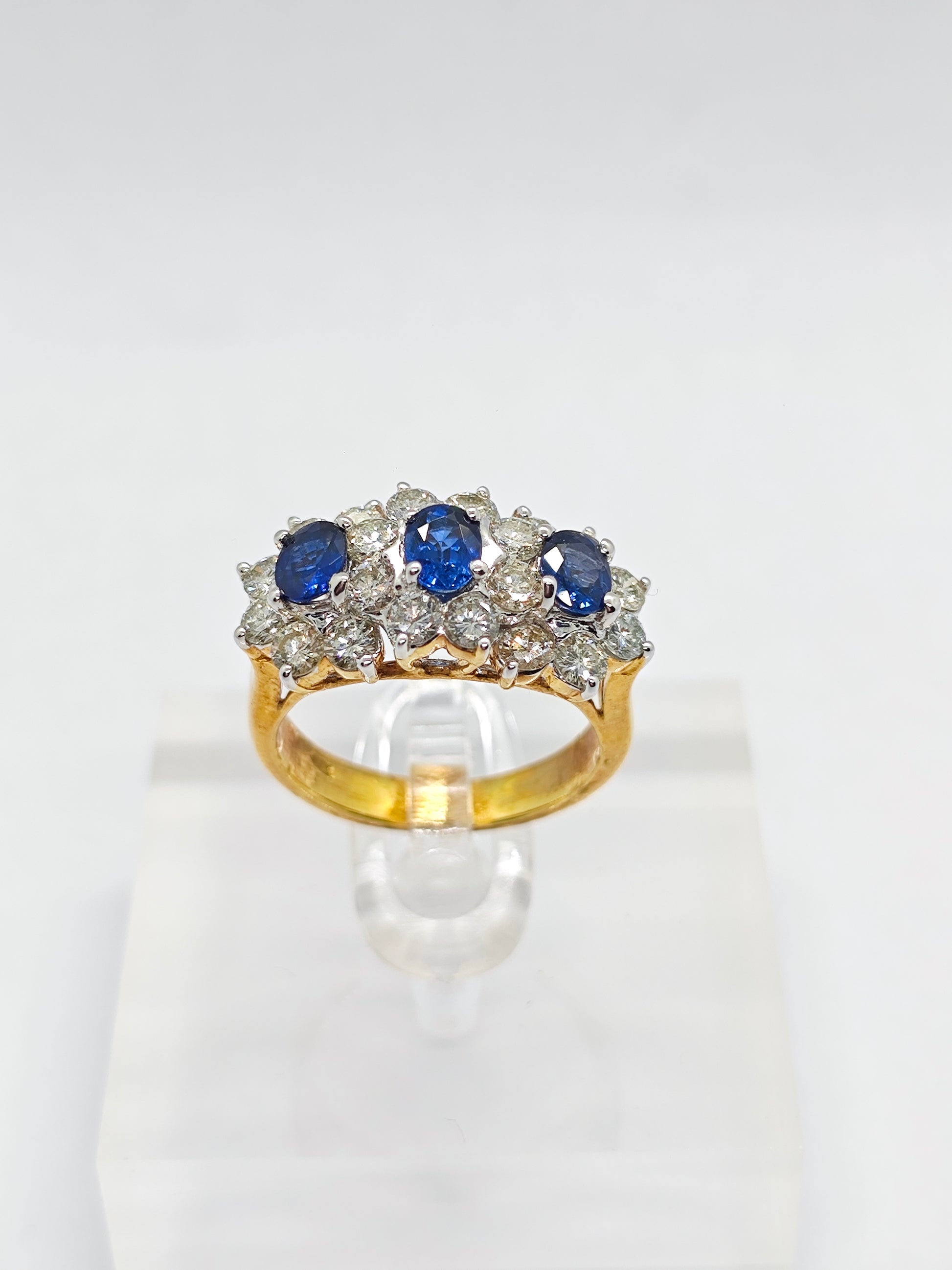 3 sapphire (0.97 carat), 20 diamonds (1.27 carat)