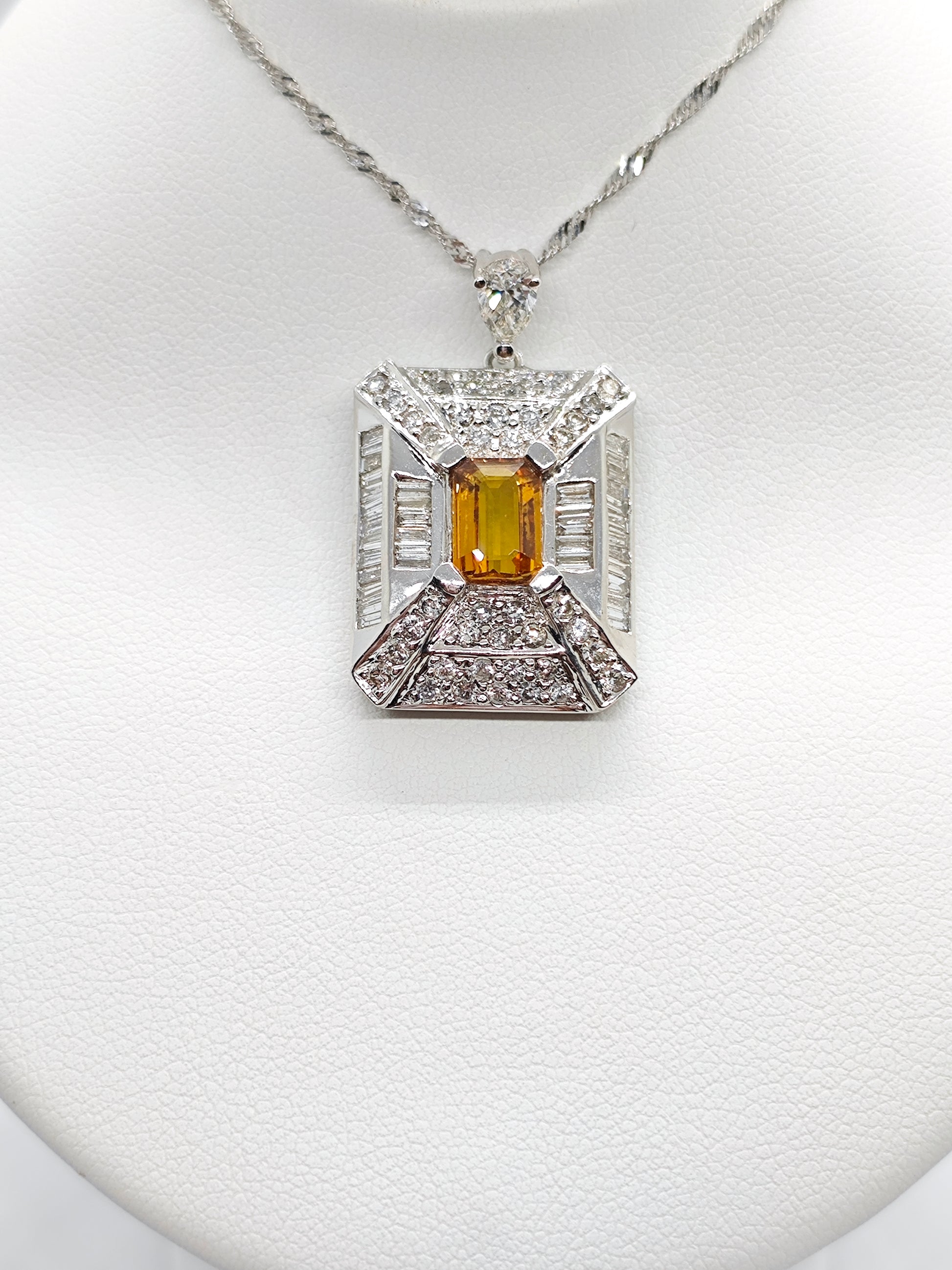 1 Yellow Topaz (1 carat), 1 diamond (0.13 carat), 44 diamonds (0.7 carat), 36 tapered diamonds (0.7)