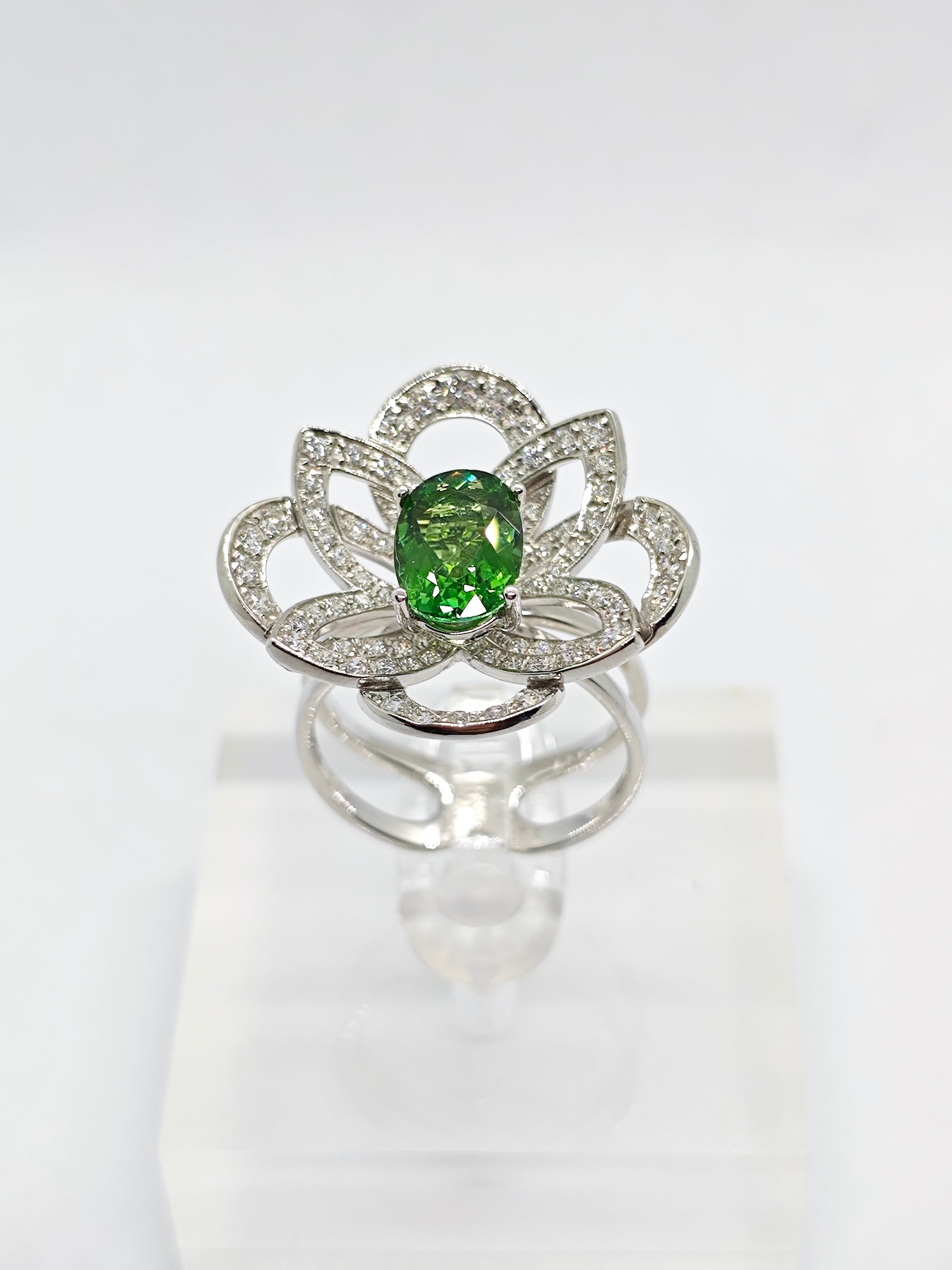 1 Green Tourmaline (1.54 carat), 86 diamonds (0.8 carat)